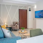 Az apartman városra néző kilátással büszkélkedhet.